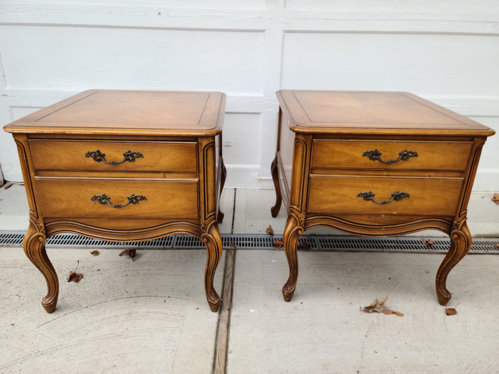 These two side tables were so much fun to redo. They were made by Weiman Furniture Co. which was a quality furniture company established in the 1940’s or earlier. With my research I suspect these were made between the 1950’s and the 1960’s. These are the first pieces I actually bought to redo which is not what I normally do, but I knew these were vintage and I could not pass up the price. I paid $20 for the pair, which is a steal! I also purchased a drum table which you can read about here.